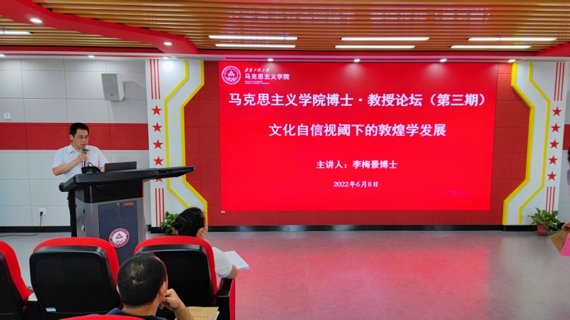 6月8日下午,马克思主义学院第三期博士•教授论坛在VR虚拟实践教学中心(图书馆综合楼1409室)举办,本场论坛邀请我院陈金香博士和李梅景博士分别作题为“人德合一:中国个体道德的文化价值基础和构建目标”和“文化自信视阈下的敦煌学发展”的主题报告。论坛由马克思主义学院副院长李海涛主持,马克思主义学院全体教师及研究生参加本场论坛。