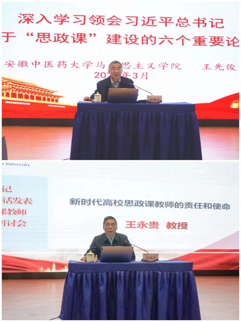 此次研讨会设置有主旨报告、示范教学展示和马克思主义学院院长圆桌论坛三个环节。在主旨报告环节,王永贵教授以“新时代高校思政课教师的责任和使命”为题,从新时代马克思主义学院建设和马克思主义理论学科的主要特点出发,系统阐述了新时代思政课教师的重要使命和责任,提出思政课教师应努力开拓思想眼界、提升认识境界、创造美好世界,共同打造思政课建设责任共同体。王先俊教授围绕习近平总书记关于思政课建设的重要论断,对“思政课是落实立德树人根本任务的关键课程”“思政课的本质是讲道理”“办好思想政治理论课关键在教师”“推进思政课改革创新”“推动大中小一体化思政课建设”“加强党对思政课建设的领导”六个重要论断进行系统分析和阐释,提出高校党委和广大思政课教师务必认真学习,深刻领会这些重要论断,切切实实把思政课这一“关键课程”建设好。