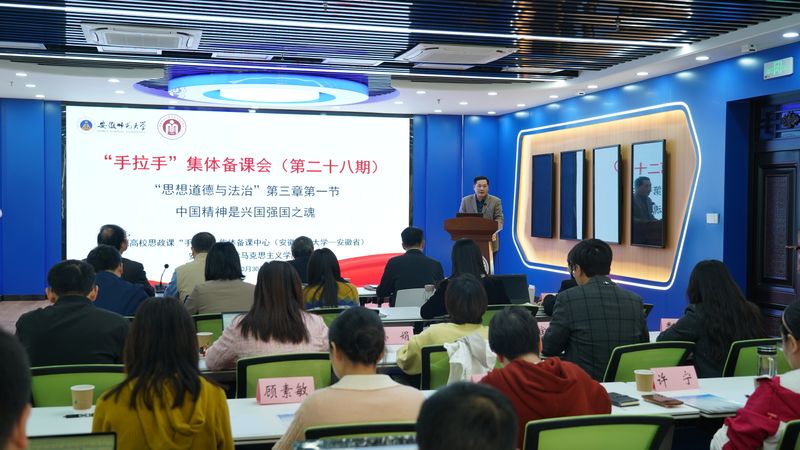 10月30日下午,由全国高校思政课“手拉手”集体备课会中心(安徽师范大学-安徽省)、安徽师范大学马克思主义学院承办的第28期“手拉手”集体备课会在安徽师范学院马克思主义学院三楼情景模拟实验室、教育部集体备课中心“云上大练兵”平台线上线下同步举行。