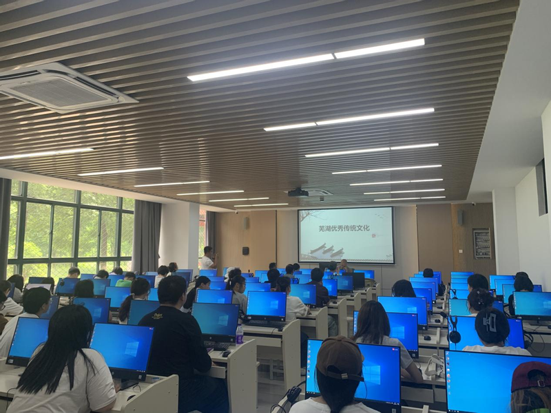 王东认为,芜湖优秀传统文化可以从科技文明、工商业文明、市民社会文明等多方面体现,他聚焦芜湖古代的科技文明,从考古、水利、冶炼、农业、浆染、中医等几个方面入手,分析了古代芜湖在多个领域创造出的辉煌成就。比如繁昌的人字洞,是欧亚古人类活动最早的遗址之一;芜湖先民开凿出了世界上较早的人工运河胥河,利用青弋江、水阳江等水系建成“中江”,使芜湖通江达海,交通便捷;北宋时期又建成伟大的水利工程万春圩,形成人水相依、人水相怡、繁荣富庶的景象,为芜湖成为“四大米市”之首奠定了基础;芜湖在冶炼行业更为突出,从“干将莫邪铸剑的传说”到全国重点文物“大工山古铜冶”,到“铁到芜湖自成钢”,再到“芜湖铁画”的诞生,无不表明芜湖是较早进入铁器时代的地区之一,一直走在科技创新的前列。他更勉励同学们在先辈的基础上,发愤图强,练好本领,服务家乡、建设家乡,用英语向世界讲好“芜湖故事”。