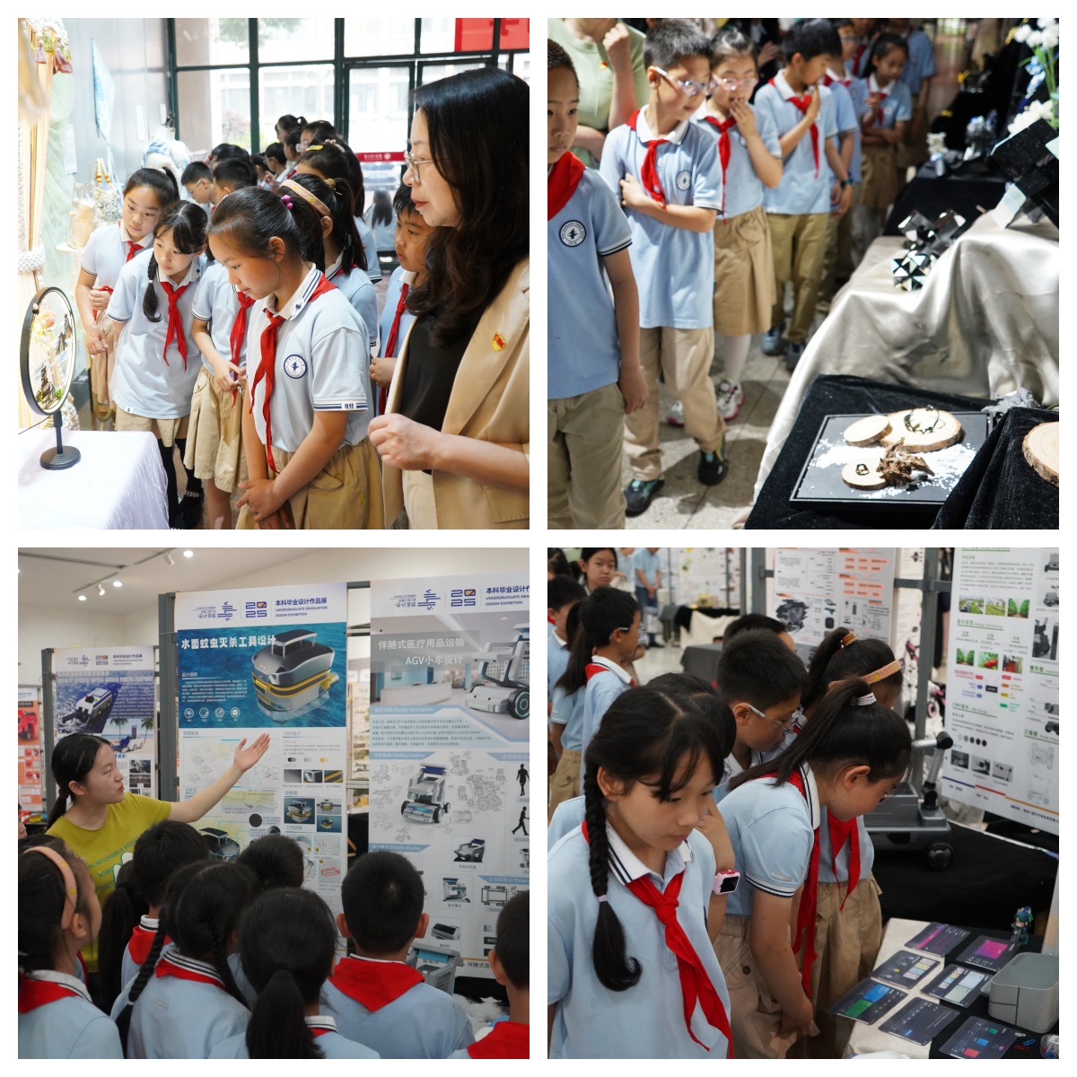 为深入推进大中小学思想政治教育一体化建设,丰富学生的审美体验,拓宽艺术视野,培养学生感知美、鉴赏美、创造美的能力,5月20日芜湖市中江小学校长林蓉带领30余名师生应设计学院邀请来校参观设计学院2025届本科生毕业展。