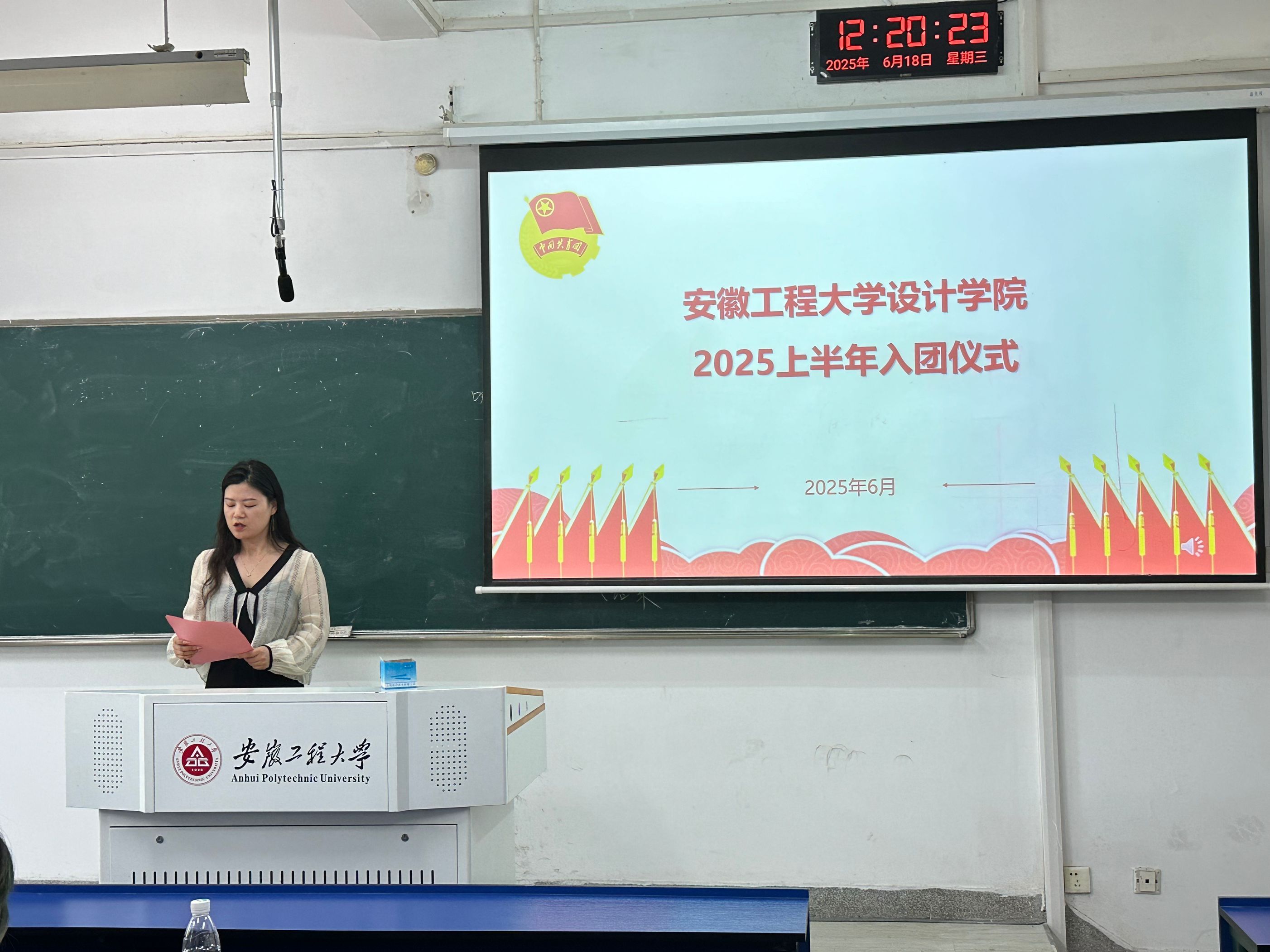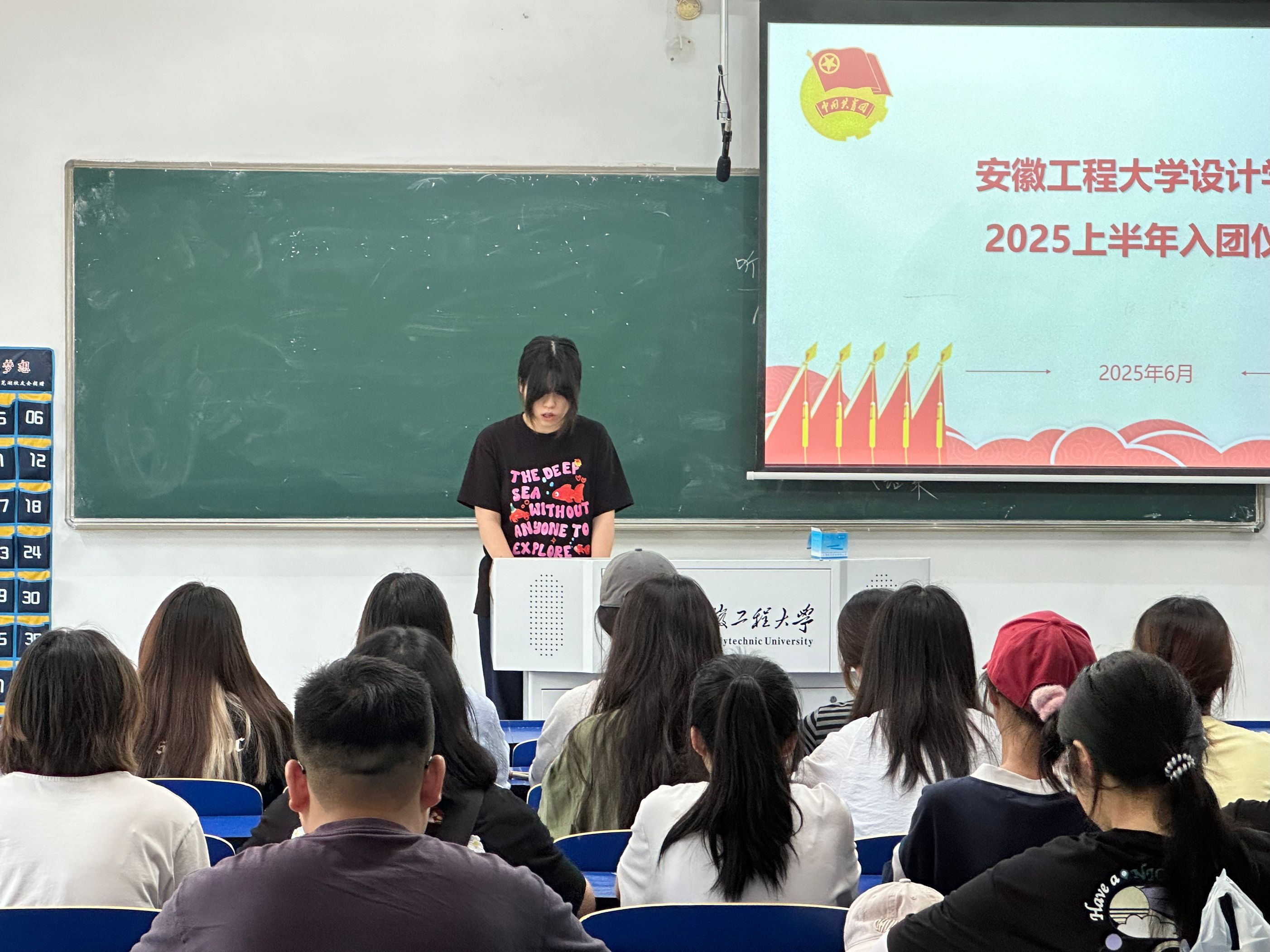 为落实全面从严治团要求,加强共青团基层组织建设,引导团员青年牢记使命,6月18日,设计学院于5教107举办入团仪式。院团委副书记田潇濛、学院团委部分骨干成员及54名新发展团员参与。